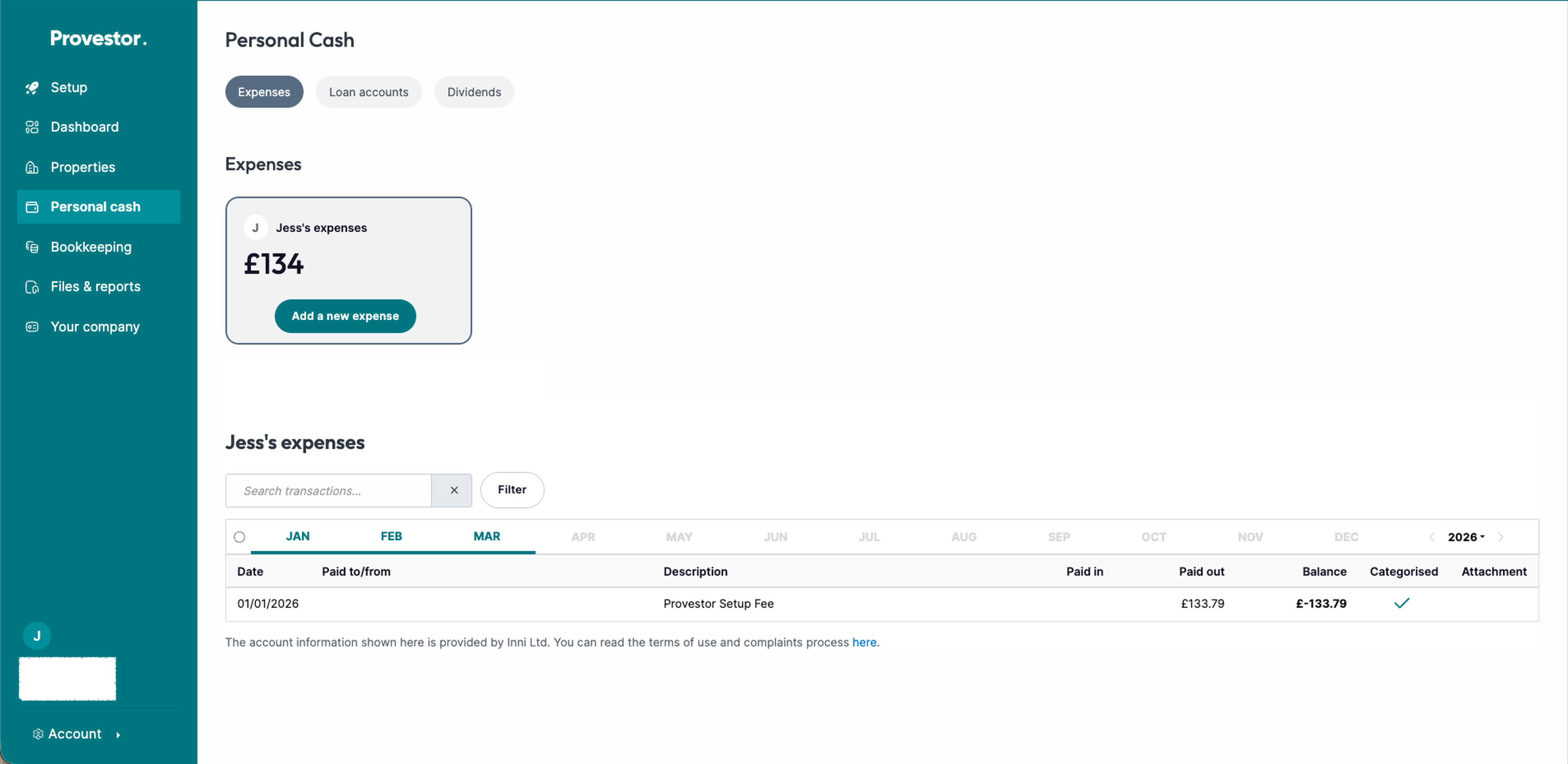 Expenses - Here you can add any business expenses that you've paid for personally e.g. if you paid us a fee to set the business up, you will have had to pay for it personally. Add the date, description, amount and category. These expenses will then sit here as owed back to you whenever you have the funds available in the business and would like to repay them.